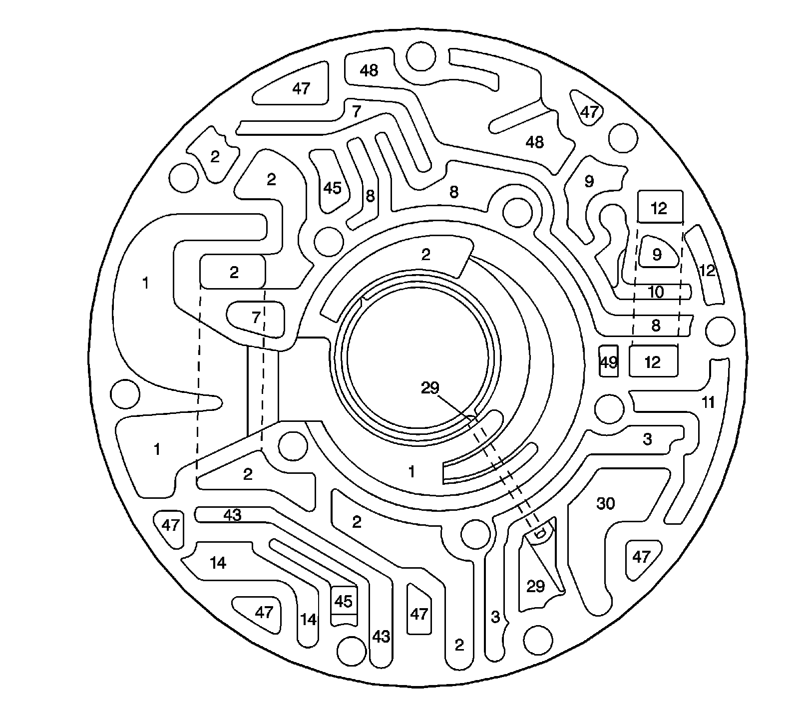 Pump Cover Fluid Passages (Pump Body Side):