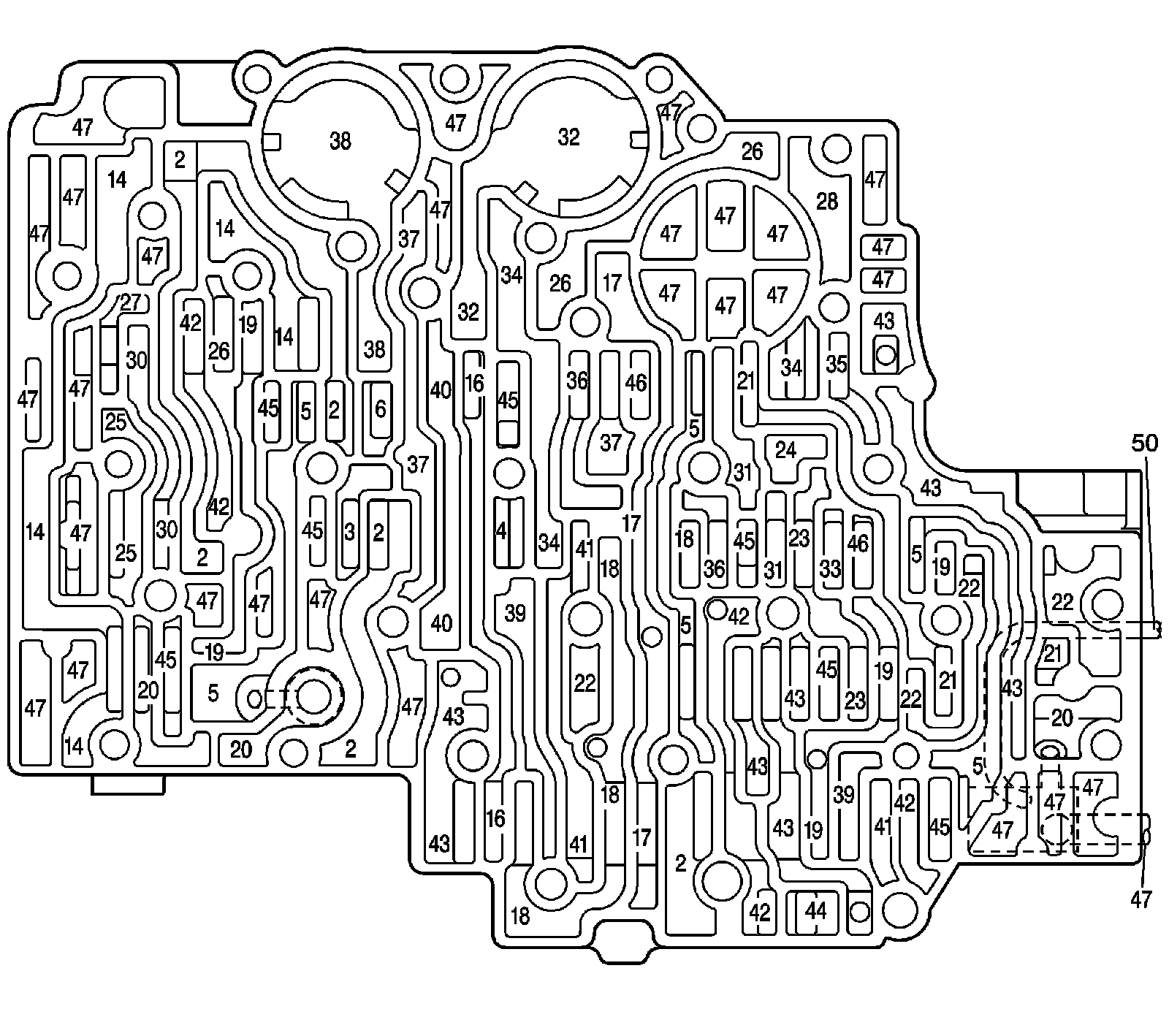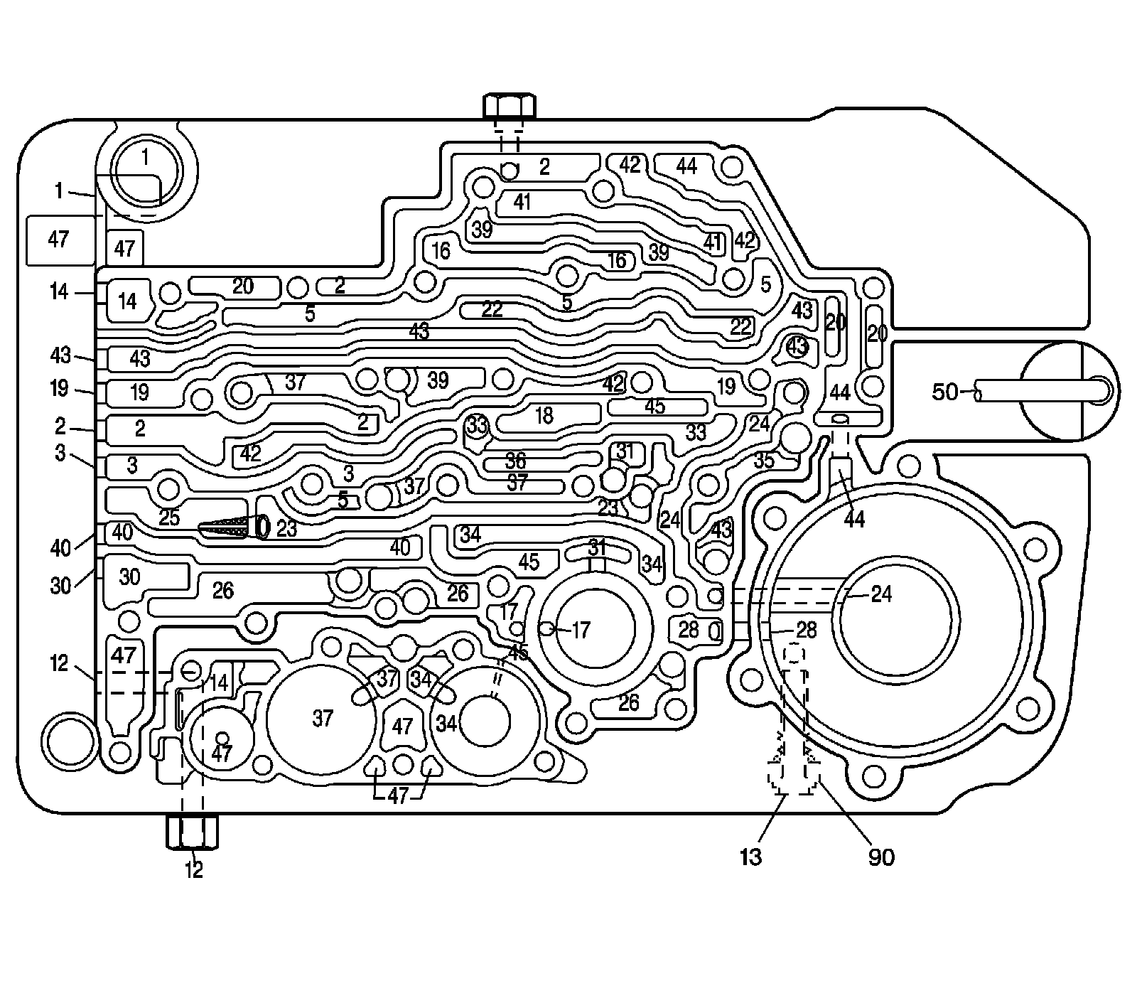 Control Valve Body Fluid Passages (Case Side):