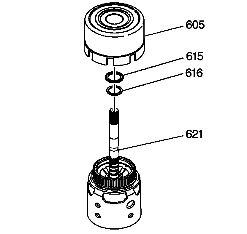 2. Remove the stator shaft/selective washer bearing assembly (615).