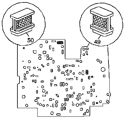 1. Inspect the valve body spacer plate and the solenoid screens (49, 50) for damage or debris.Replace the solenoid screens (49, 50) if necessary.