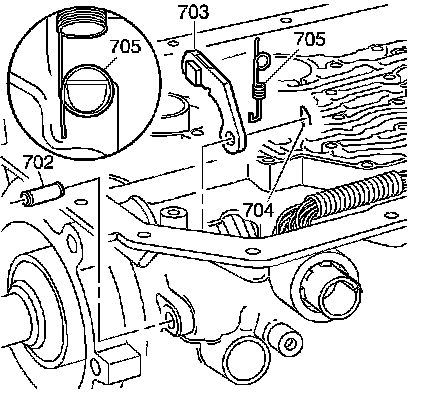 6. Assemble the manual shift shaft detent lever assembly (711) to the parking pawl actuator assembly (710).