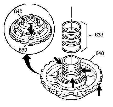 7. Inspect the intermediate clutch spring assembly (635) for collapsed coils and distortion.