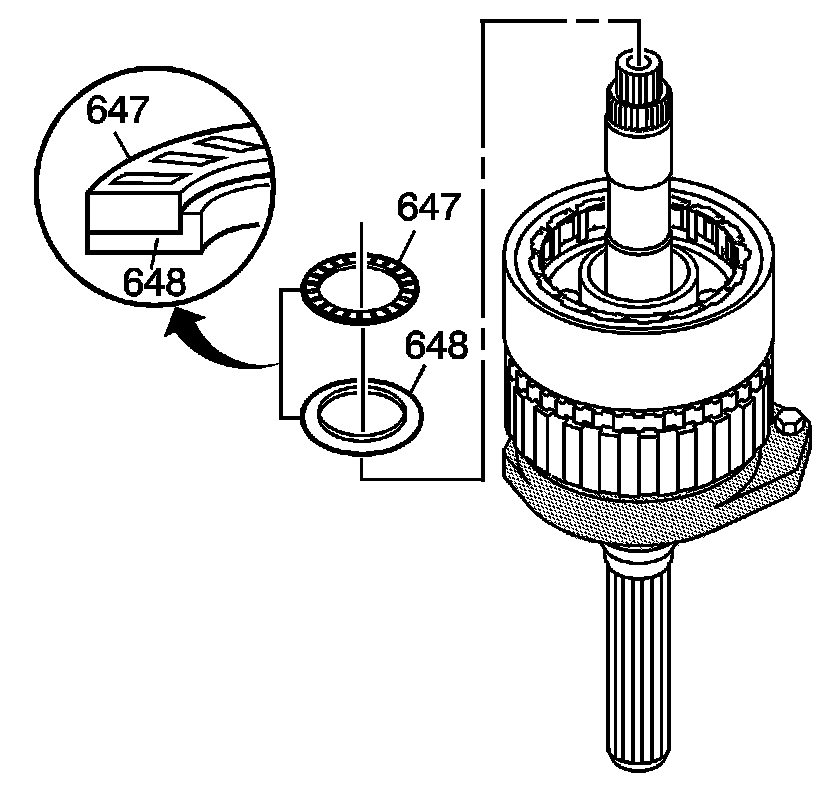 24. Assemble the sun gear front thrust bearing assembly (647) onto the sun gear front thrust bearing race (648).