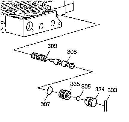 19. Install the shift valve fluid filter bore plug pin (303).