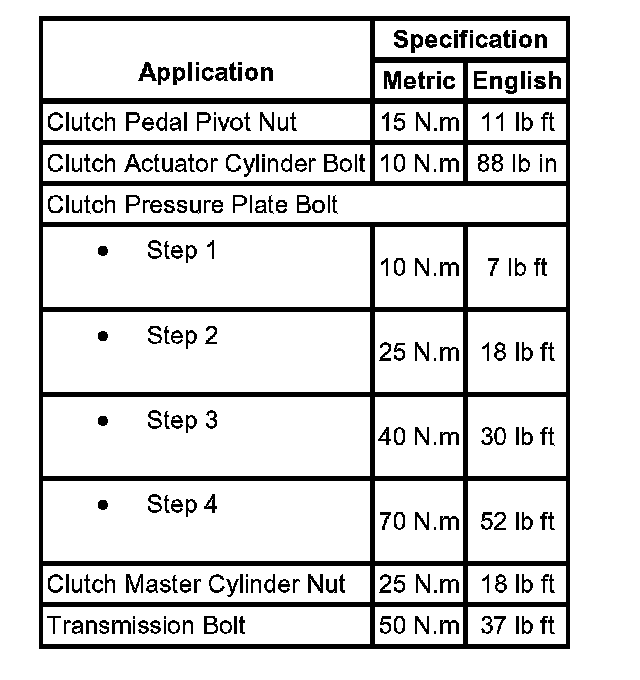 Fastener Tightening Specifications: