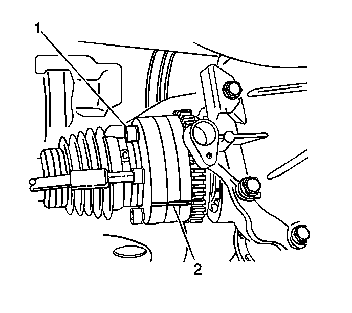 5. Remove the bolts and retaining plates (2) from the outer constant velocity joint