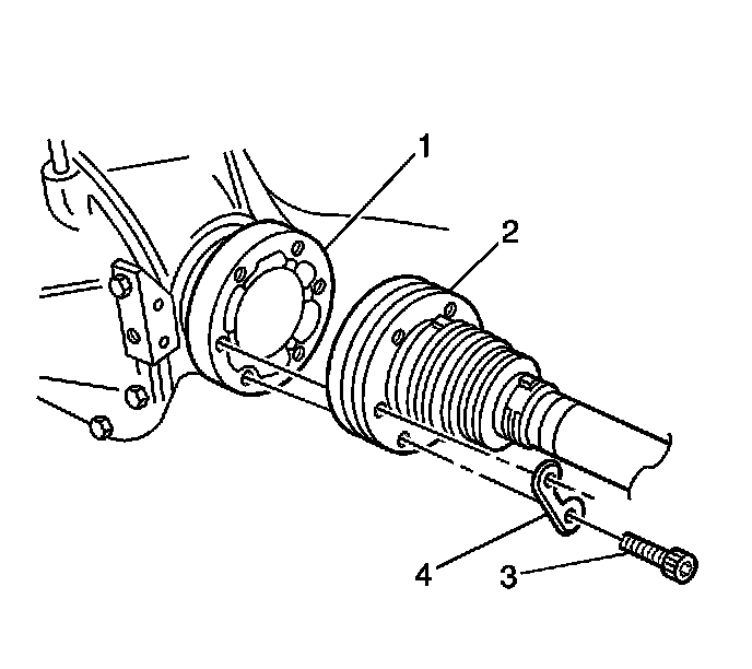 4. Remove the bolts (3) and retaining plates (4) from the inner constant velocity joint