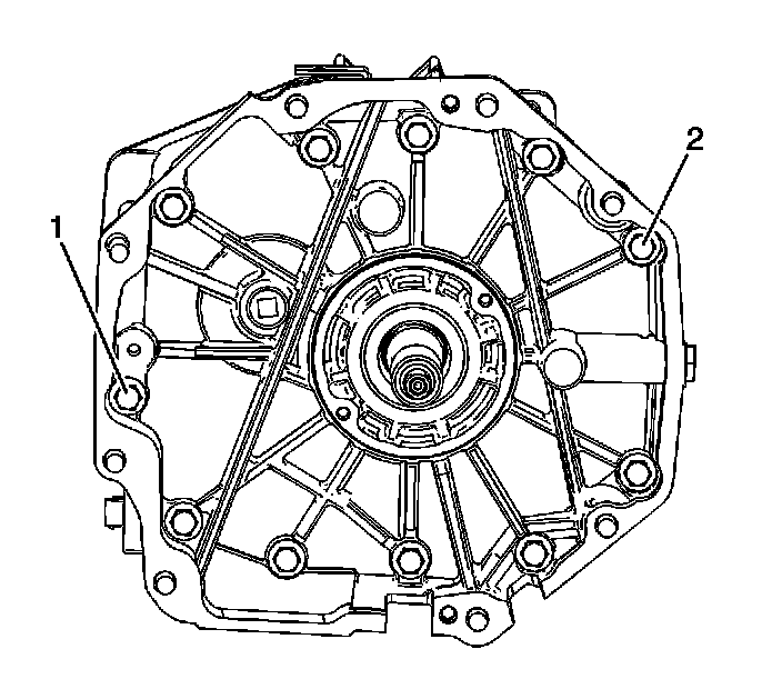 1. Remove the adapter plate bolts (1) and (2).