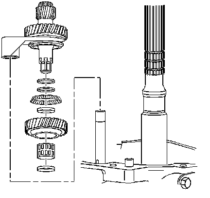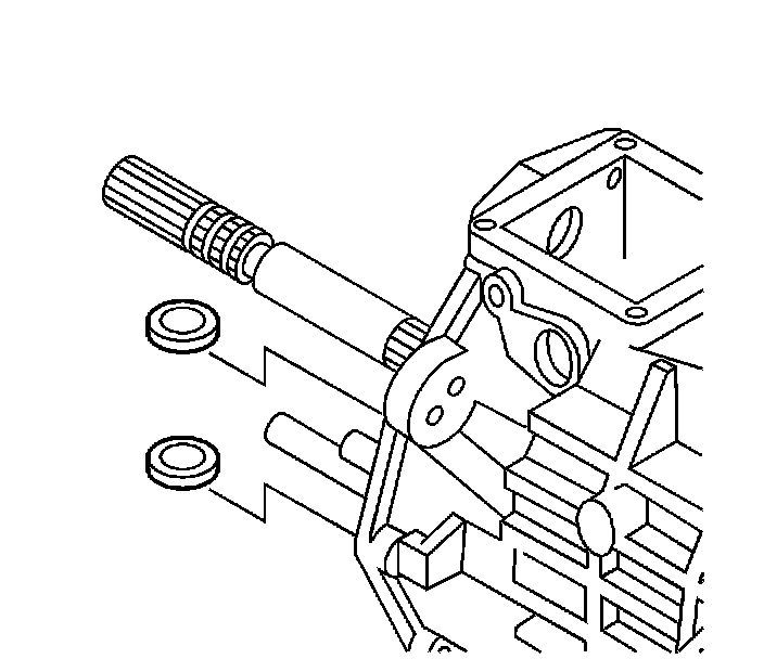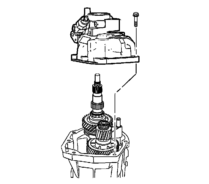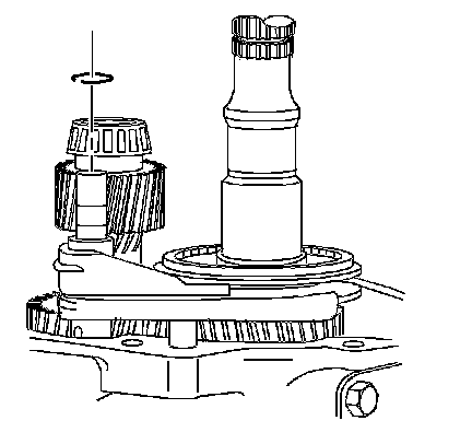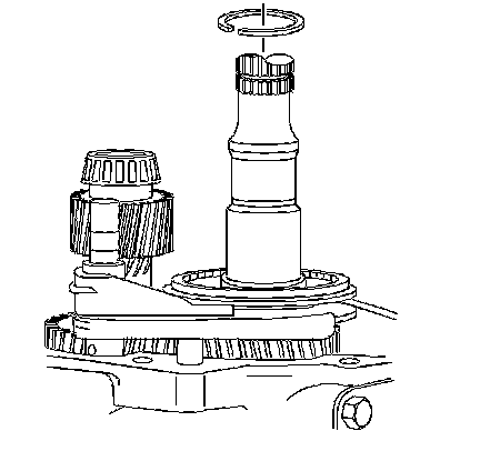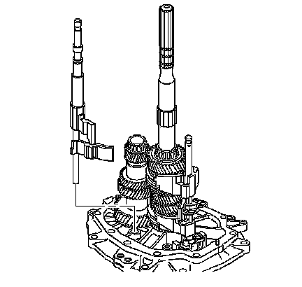 3. Remove the countershaft extension assembly with the 5th/6th speed shift fork, 6th speed gear bearing spacer, 6th speed drive gear, and caged needle bearing. The 6th speed gear bearing spacer will slide out during removal of the countershaft extension assembly.