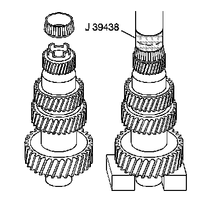 1. Install a new large tapered bearing, using the J 39438, U-blocks and a hydraulic press.
