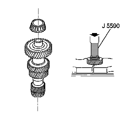 2. Install a new small tapered bearing, using the J 5590 and a hydraulic press.