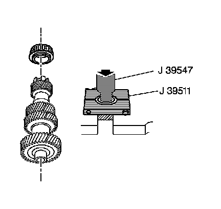 3. Remove the large tapered bearing, using the J 39511, the J 39547, and a hydraulic press.