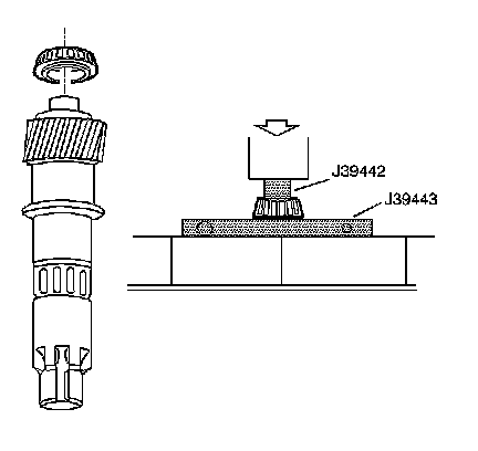 Remove the small tapered bearing, using the J 39442, the J 39443, and a hydraulic press.
