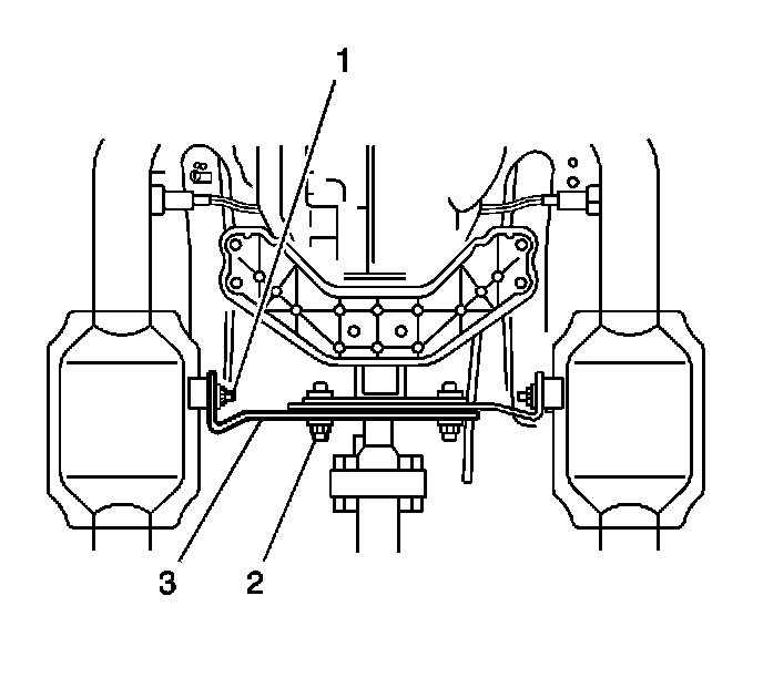 Tighten the transmission crossmember support bolts (1) to 58 Nm (43 ft. lbs.).