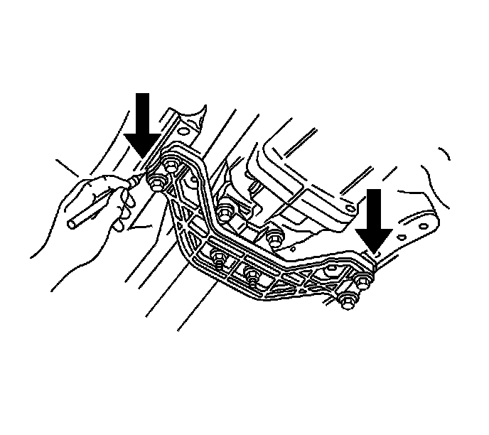 Scribe or mark around each of the transmission crossmember support mounting points to the vehicle underbody, to provide alignment reference points for reassembly.