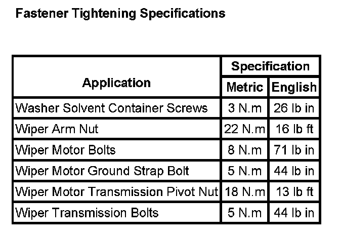Wiper and Washer Systems: Specifications
