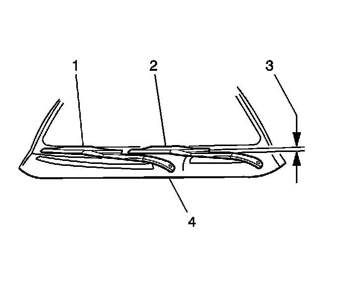 4. Remove the wiper arm (4) from the drive spindle (3), taking care not to allow the wiper arm (4) to contact the rear edge of the hood.
