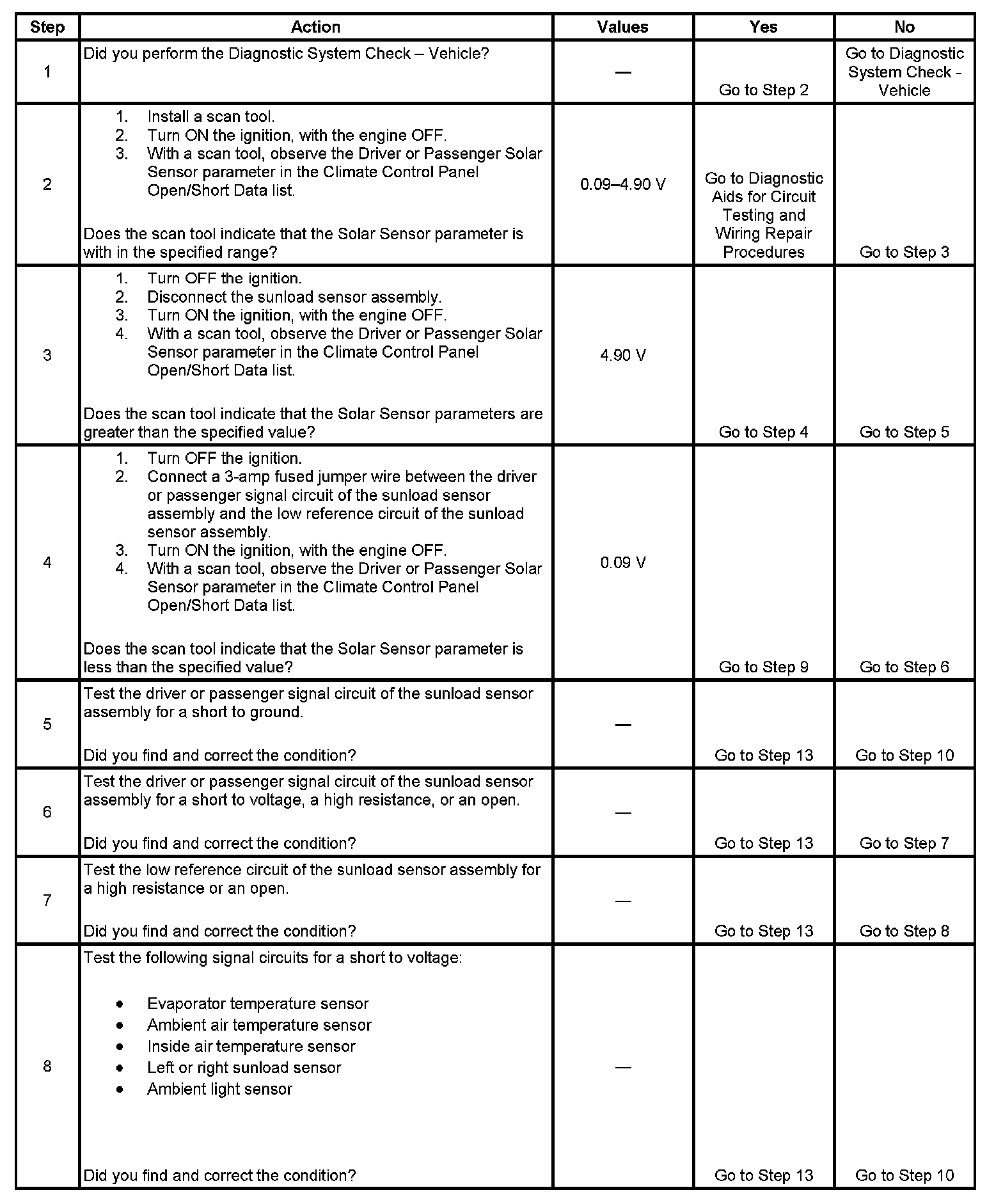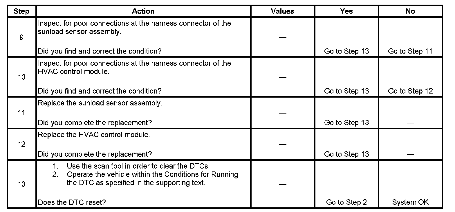 - If the DTC sets due to a high voltage condition, the HVAC control module will operate the system as if a minimum sunload condition exists.