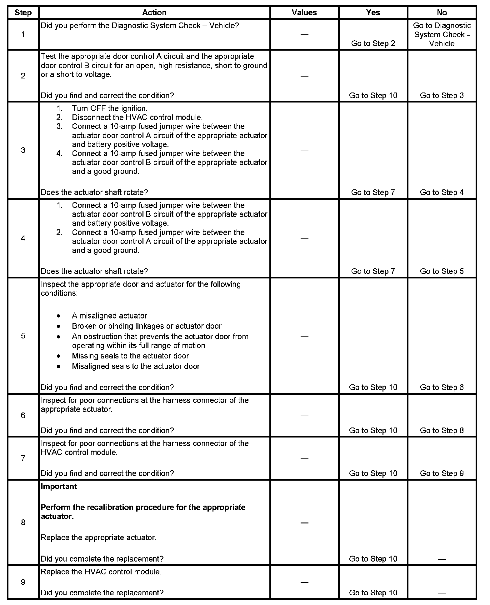 - Inspect the appropriate actuator door and actuator for the following conditions: