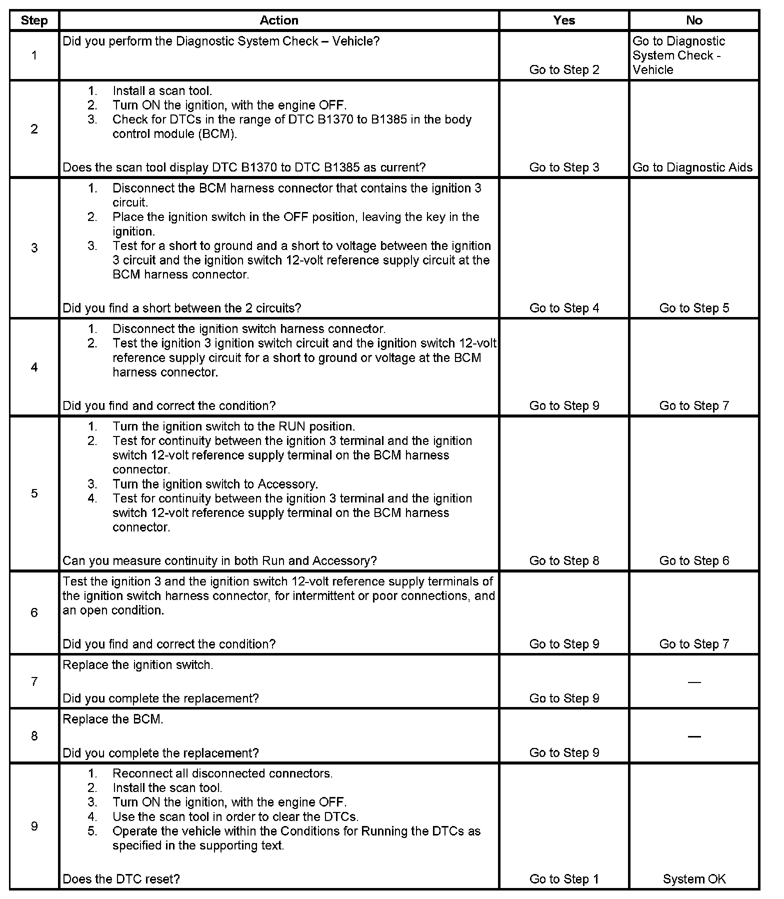 3. This tests the ignition switch for a short circuit between the 12-volt reference supply circuit and the ignition 3 circuit in the OFF position.