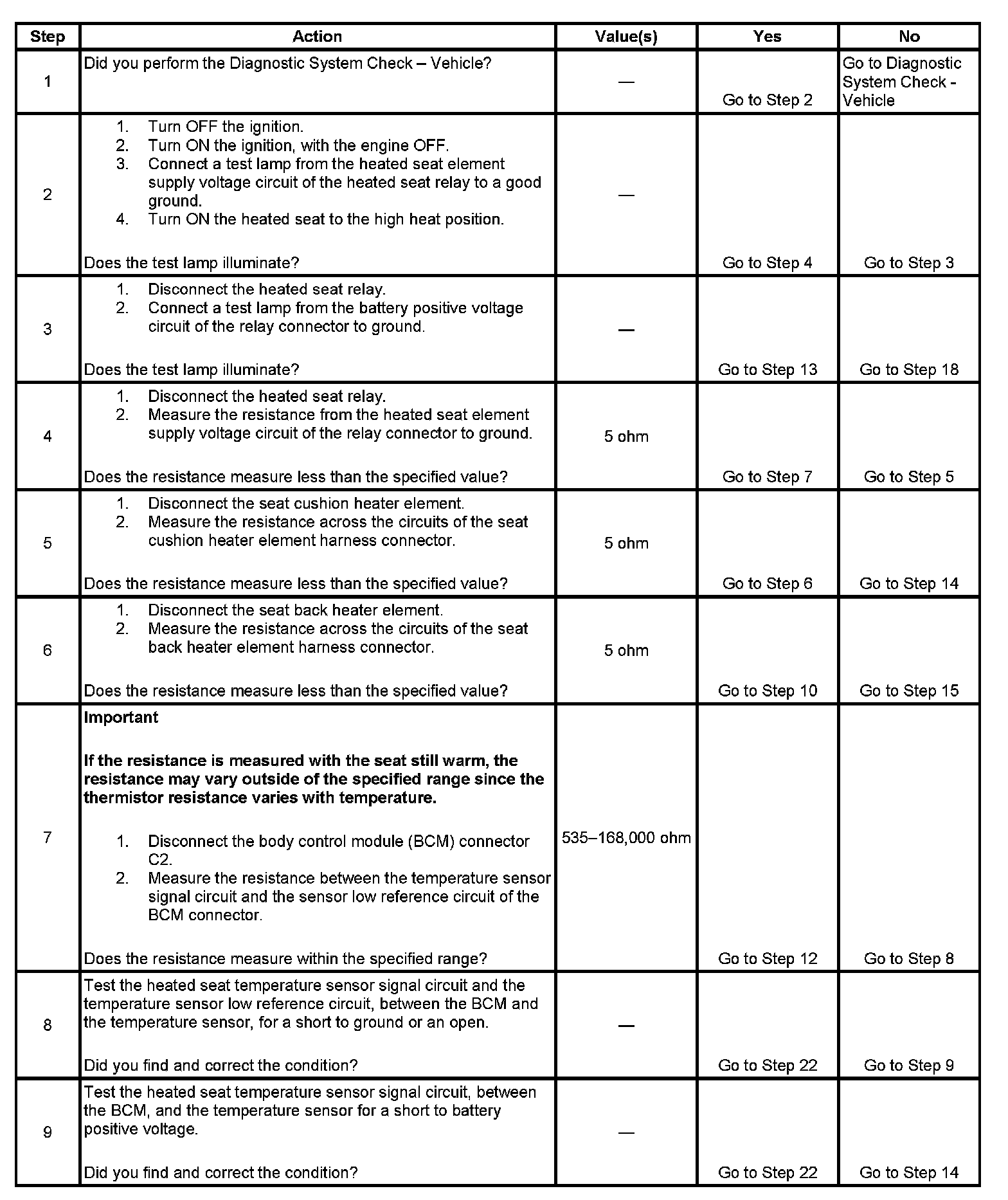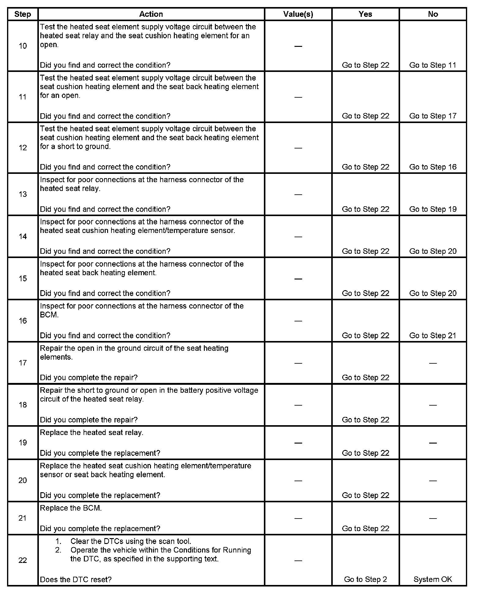 - Faults in circuits of the heated seat system other than the temperature sensor may cause this DTC to set.