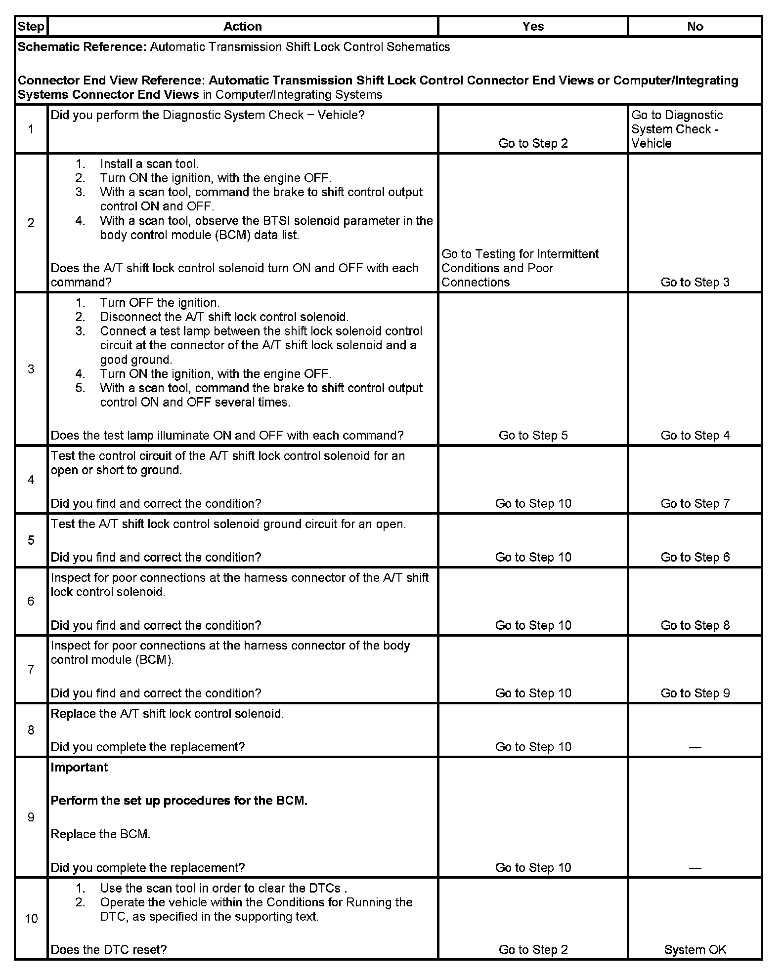 4. This step tests for an open or short to ground at the control circuit of the A/T shift lock control solenoid.
