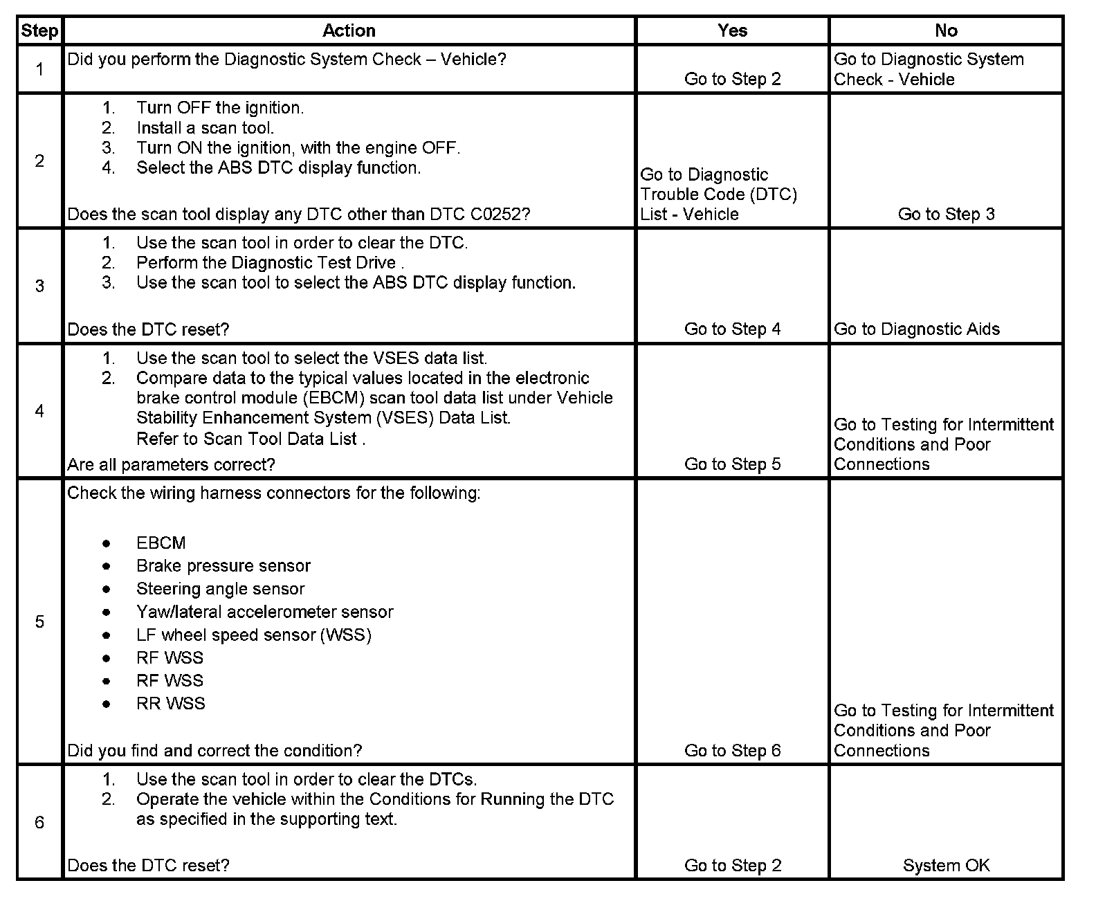 DTC C0252 Vehicle Stability Enhancement System (VSES) Sensors Uncorrected