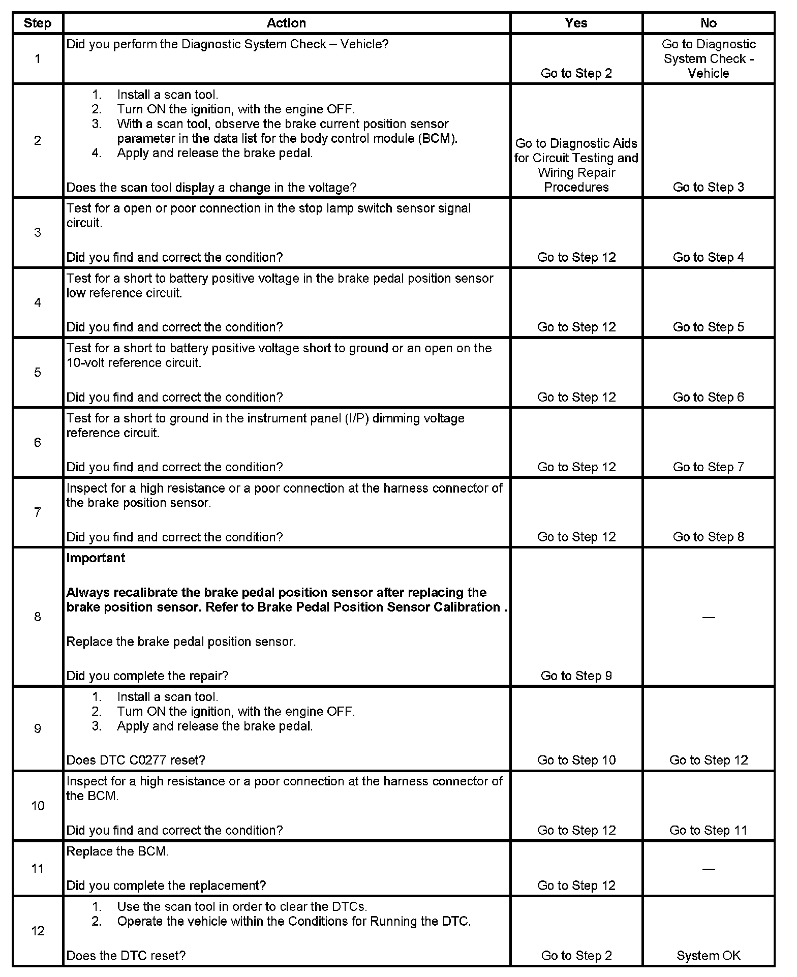 DTC C0277 Brake Pedal Position Sensor Circuit