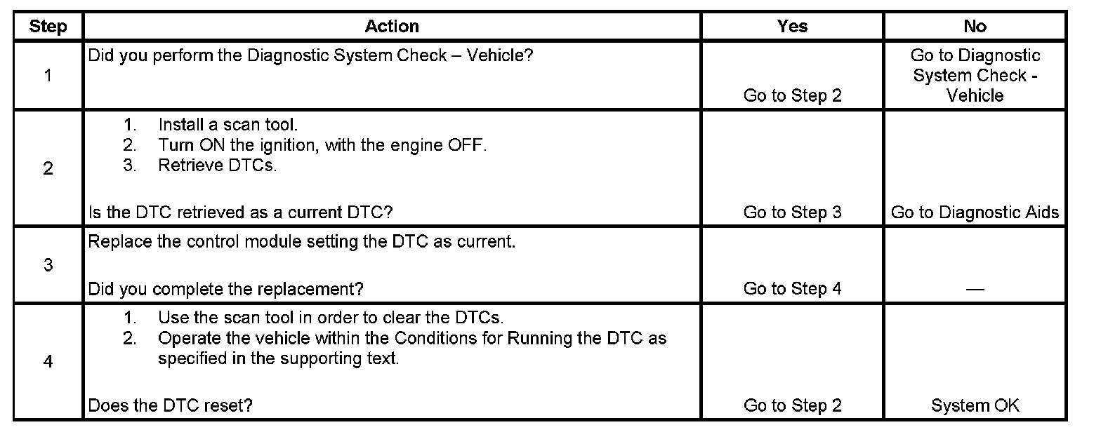 - If this DTC is retrieved as both a current and history DTC, replace the module.