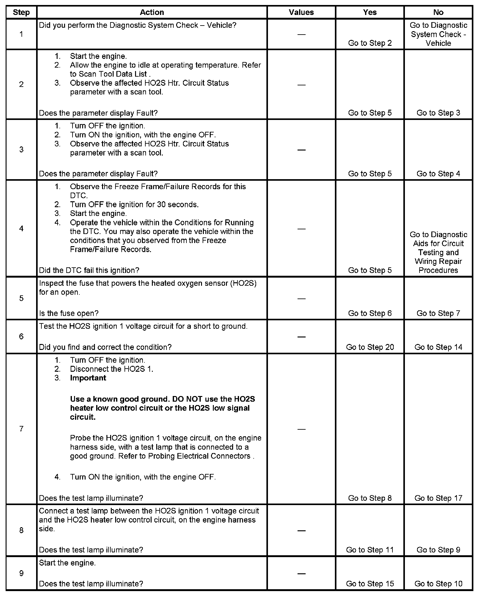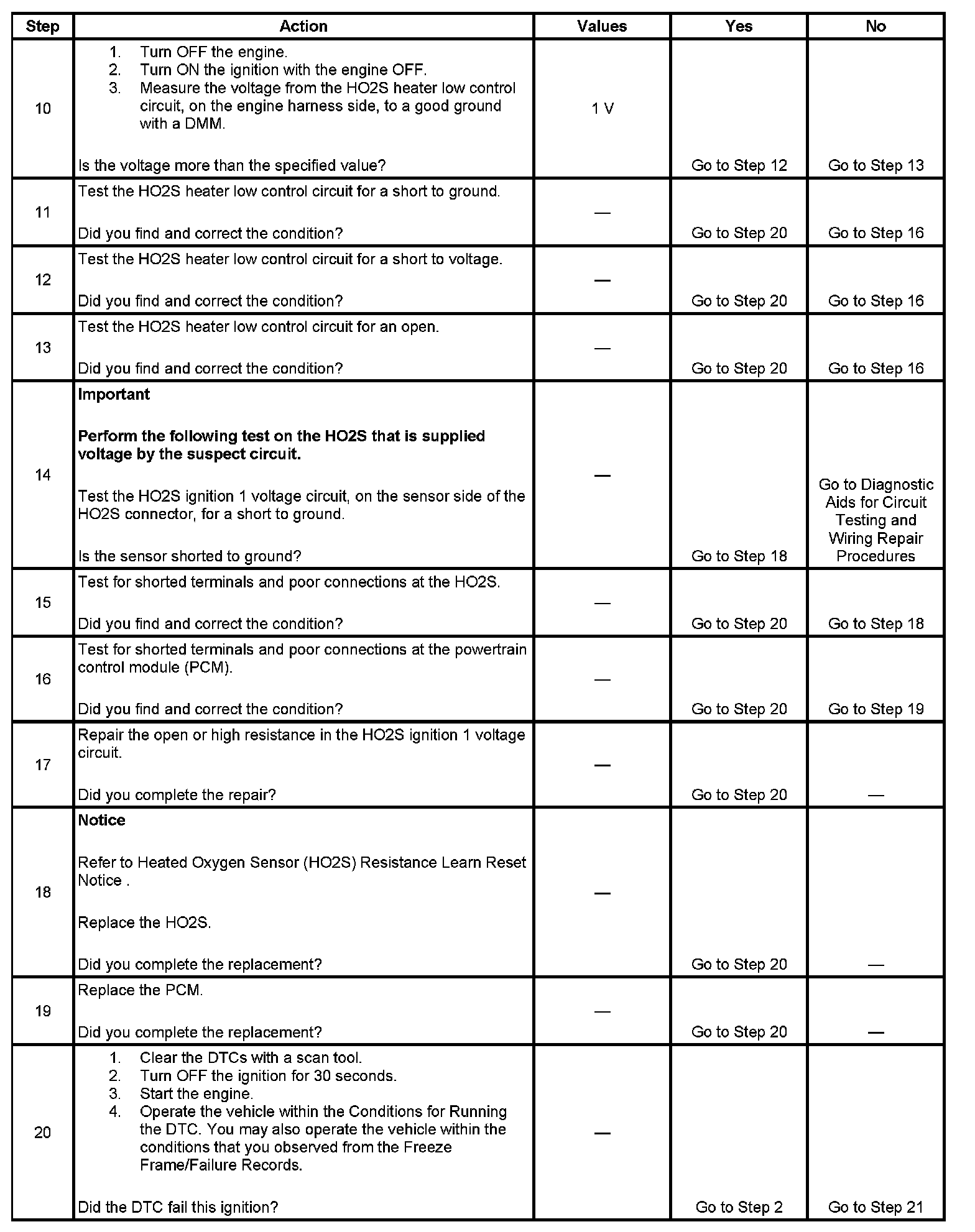 If the PCM detects there is a circuit fault present on the HO2S 1 heater low control circuit, DTC P0030 for bank 1 sensor 1 will set.