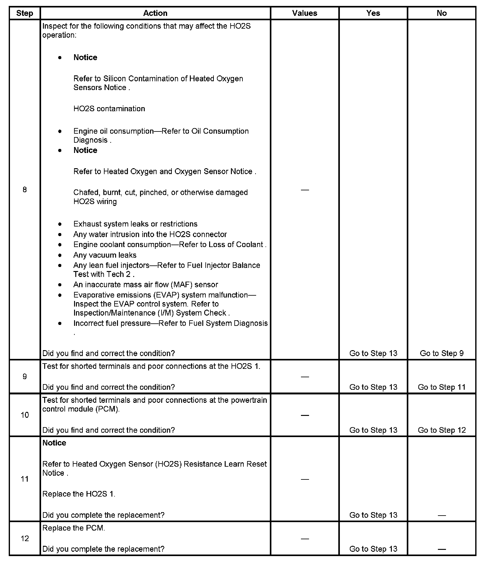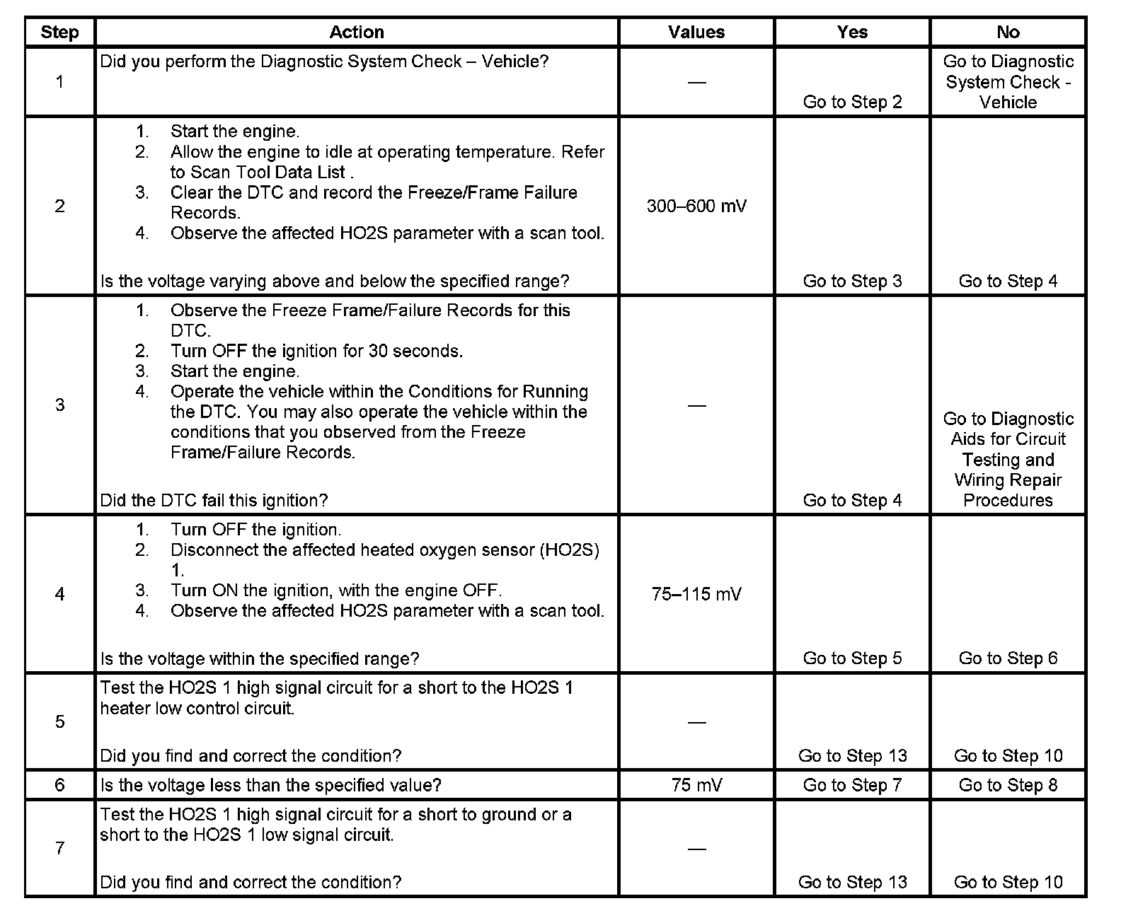 - The PCM detects that the HO2S 1 signal voltage is less than 78 mV for more than 51 seconds. Or The PCM detects that the HO2S 1 signal voltage is less than 598 mV during PE mode for more than 7.5 seconds.
