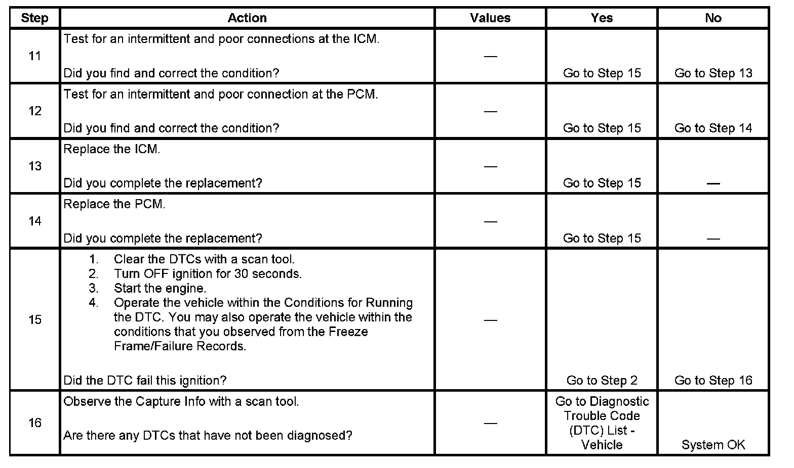 - A current DTC, Last Test Failed, clears when the diagnostic runs and passes.