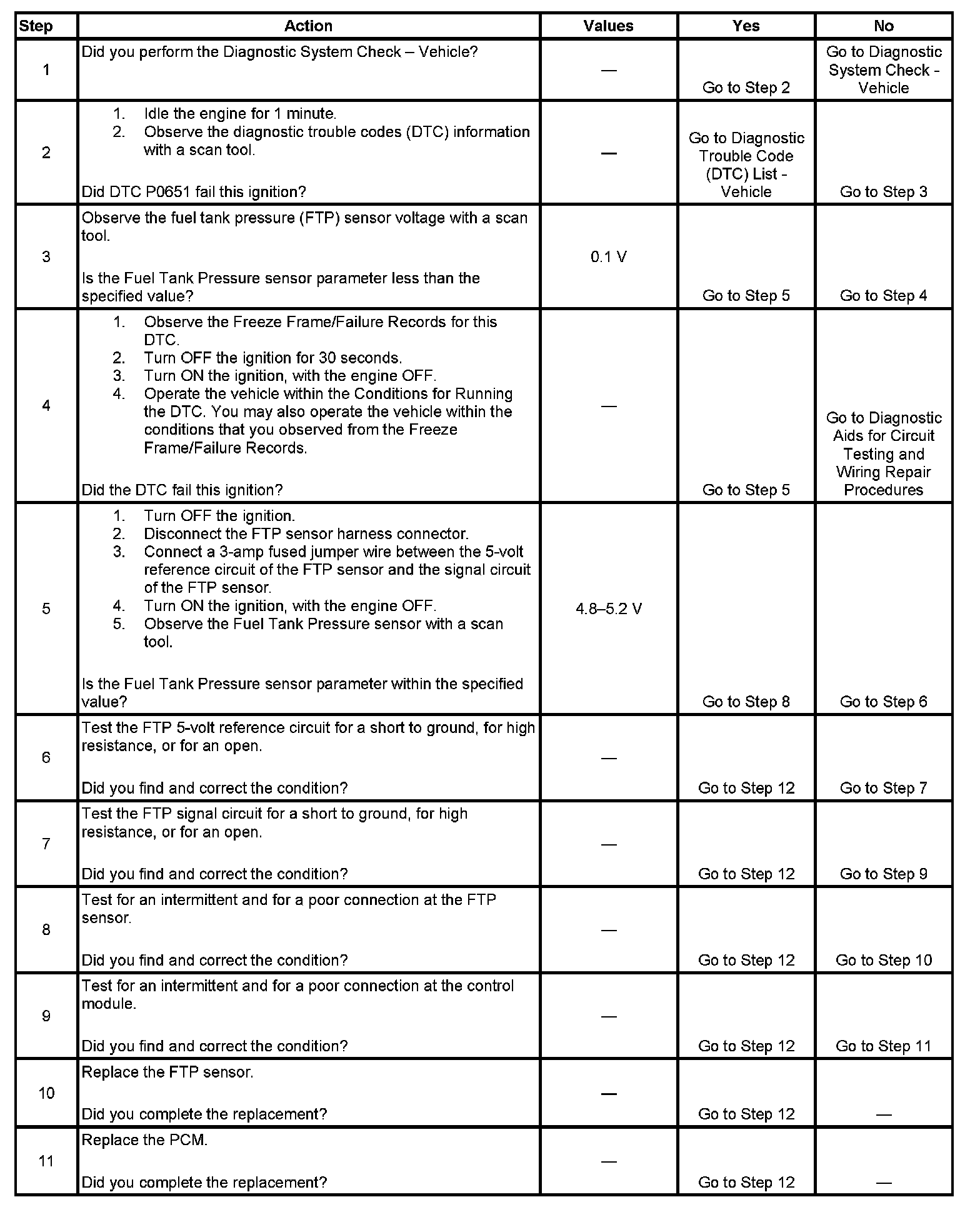 The fuel tank pressure (FTP) sensor measures the difference between the air pressure or vacuum in the evaporative emission (EVAP) system, and the outside air pressure. The control module supplies a 5-volt reference and a low reference circuit to the FTP sensor. The FTP sensor signal circuit voltage varies depending on EVAP system pressure or vacuum. If the FTP sensor signal voltage goes below a calibrated value, this DTC sets.