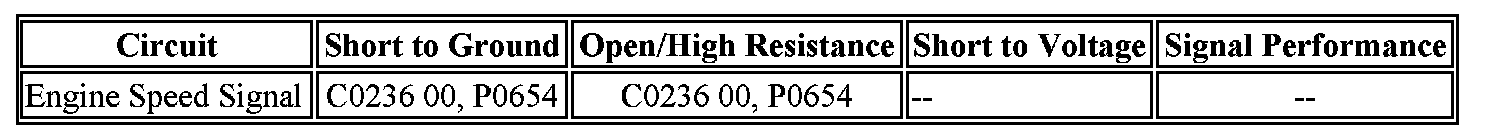 The engine control module (ECM)/powertrain control module (PCM) engine speed signal circuit provides the EBCM with an indication of engine RPM to help determine TCS control methods and rates when a TCS event takes place.