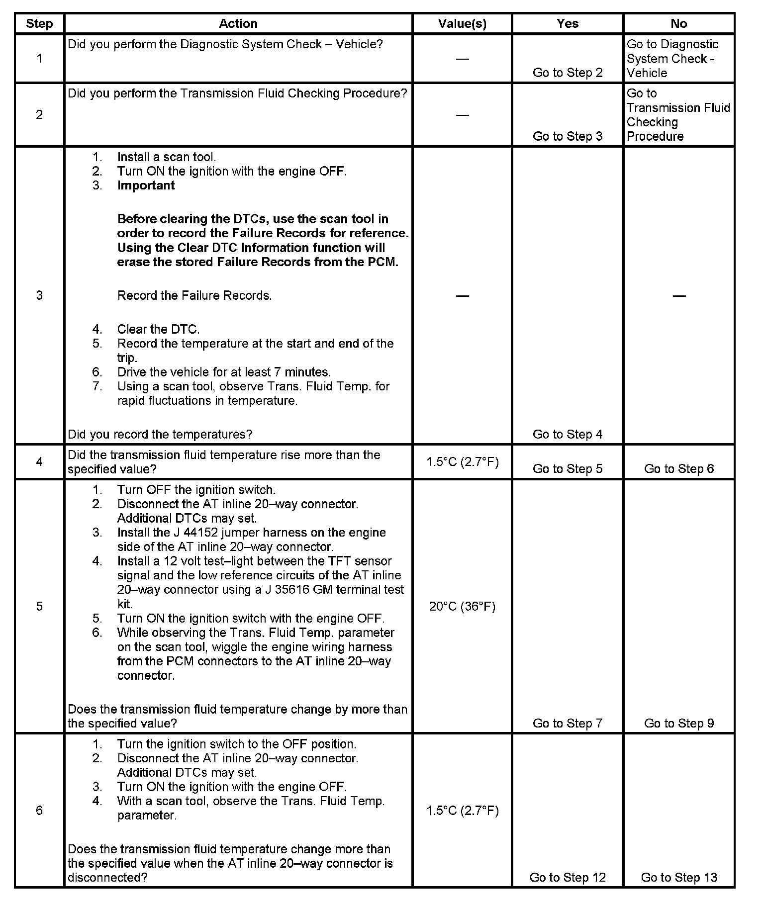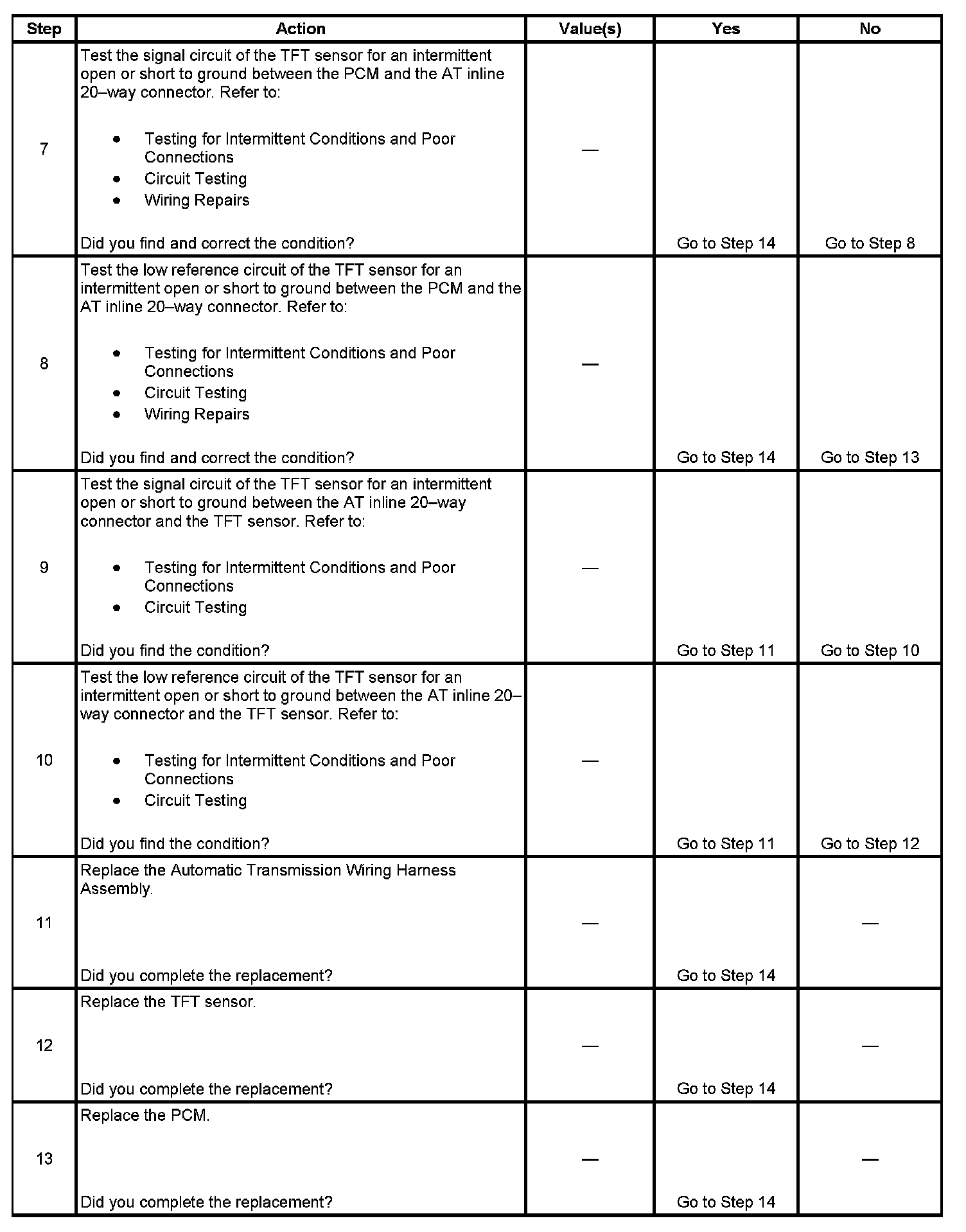 6. This step determines if a condition exists with the PCM or TFT sensor.