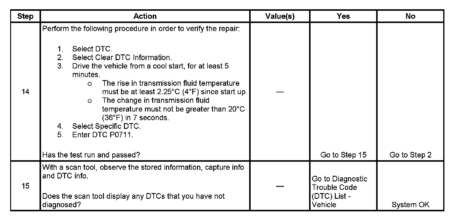 ^ The PCM stores DTC P0711 in PCM history.