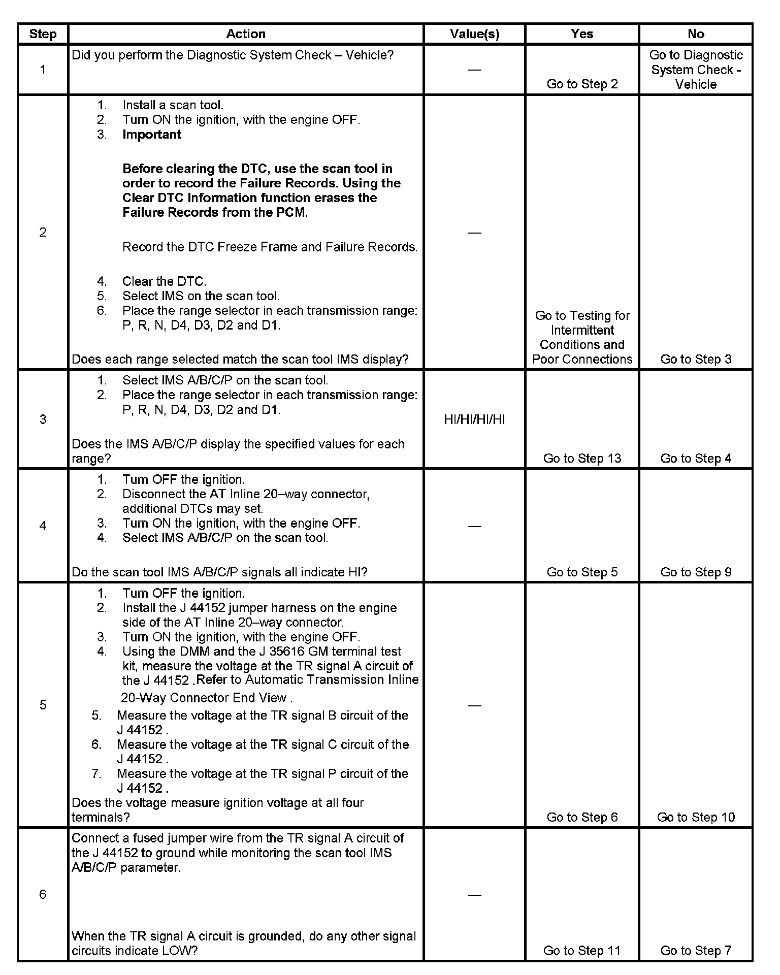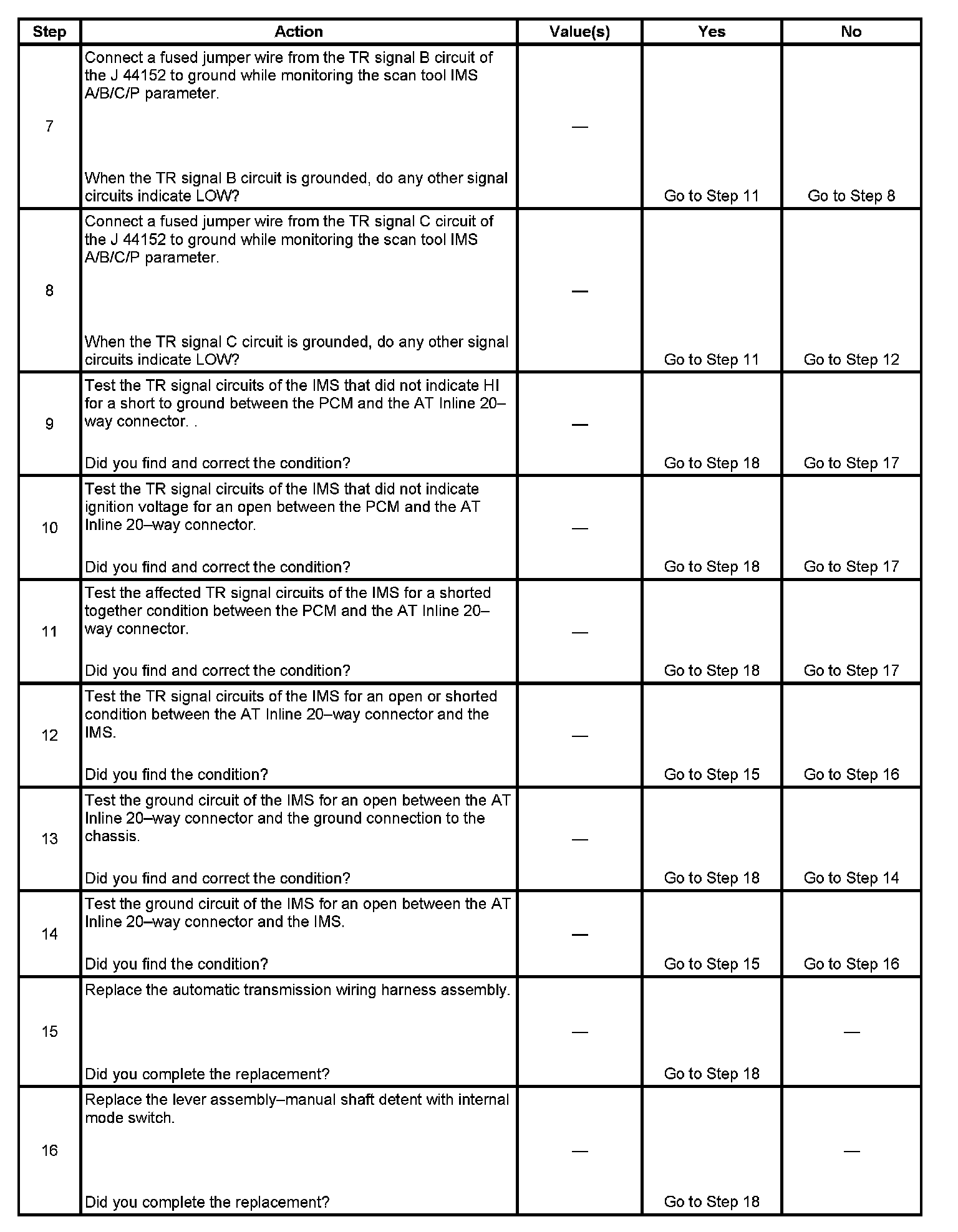 13. This step tests the internal transmission harness. If no fault is found in the harness, the fault will be in the switch.