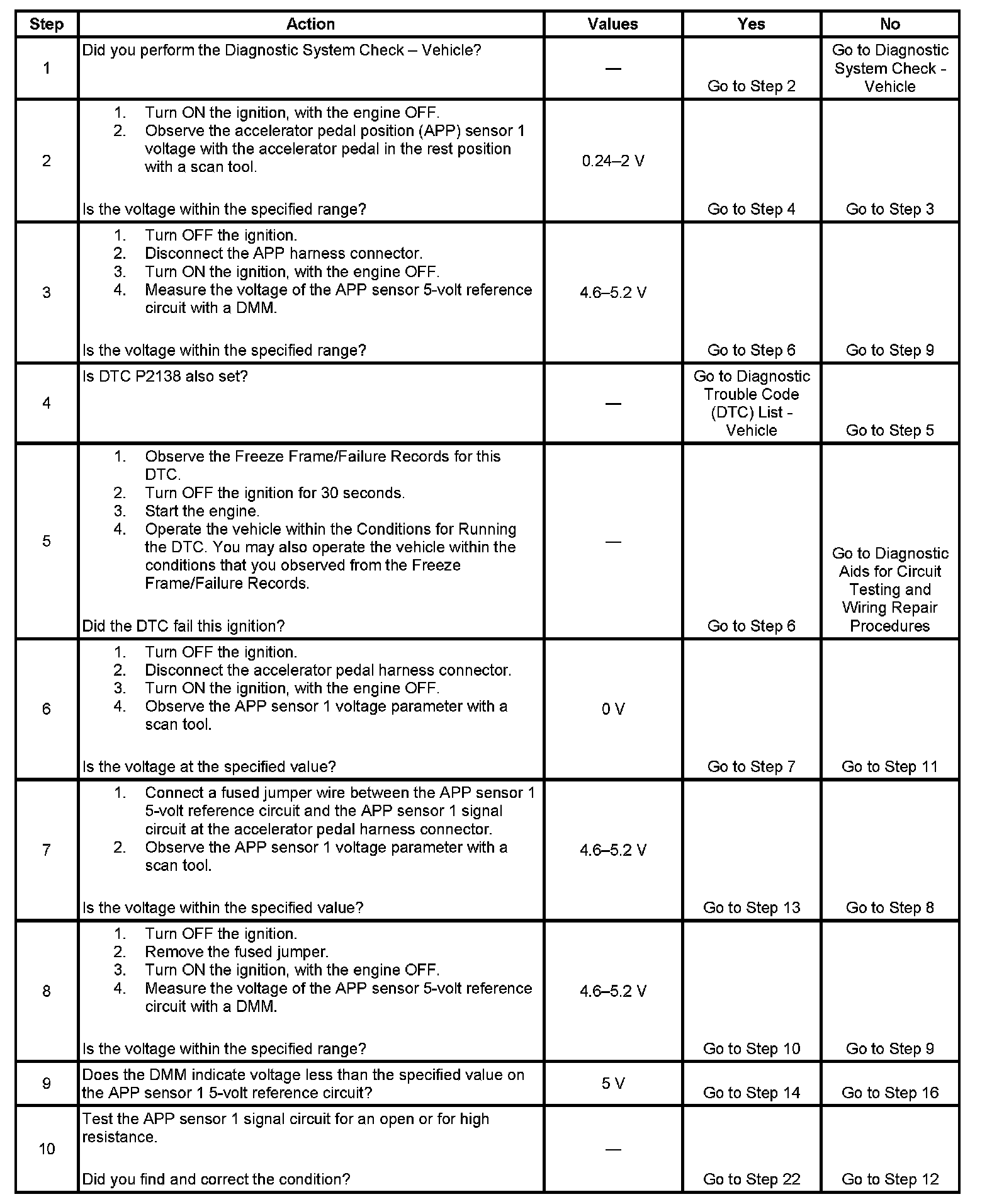 DTC P2120 Accelerator Pedal Position (APP) Sensor 1 Circuit