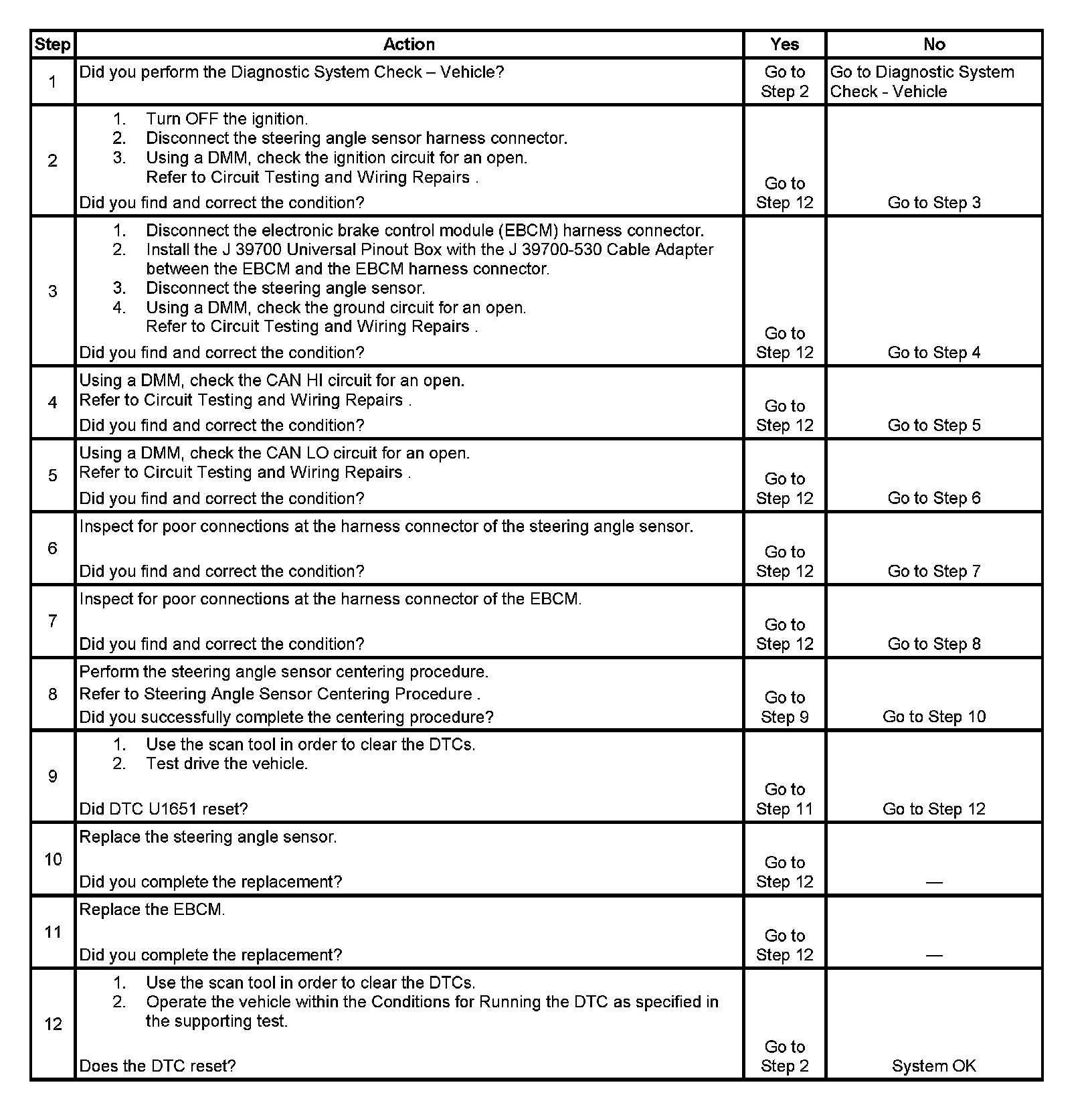 The electronic brake control module (EBCM) monitors the received messages from the steering angle sensor for corruption or for missing messages.