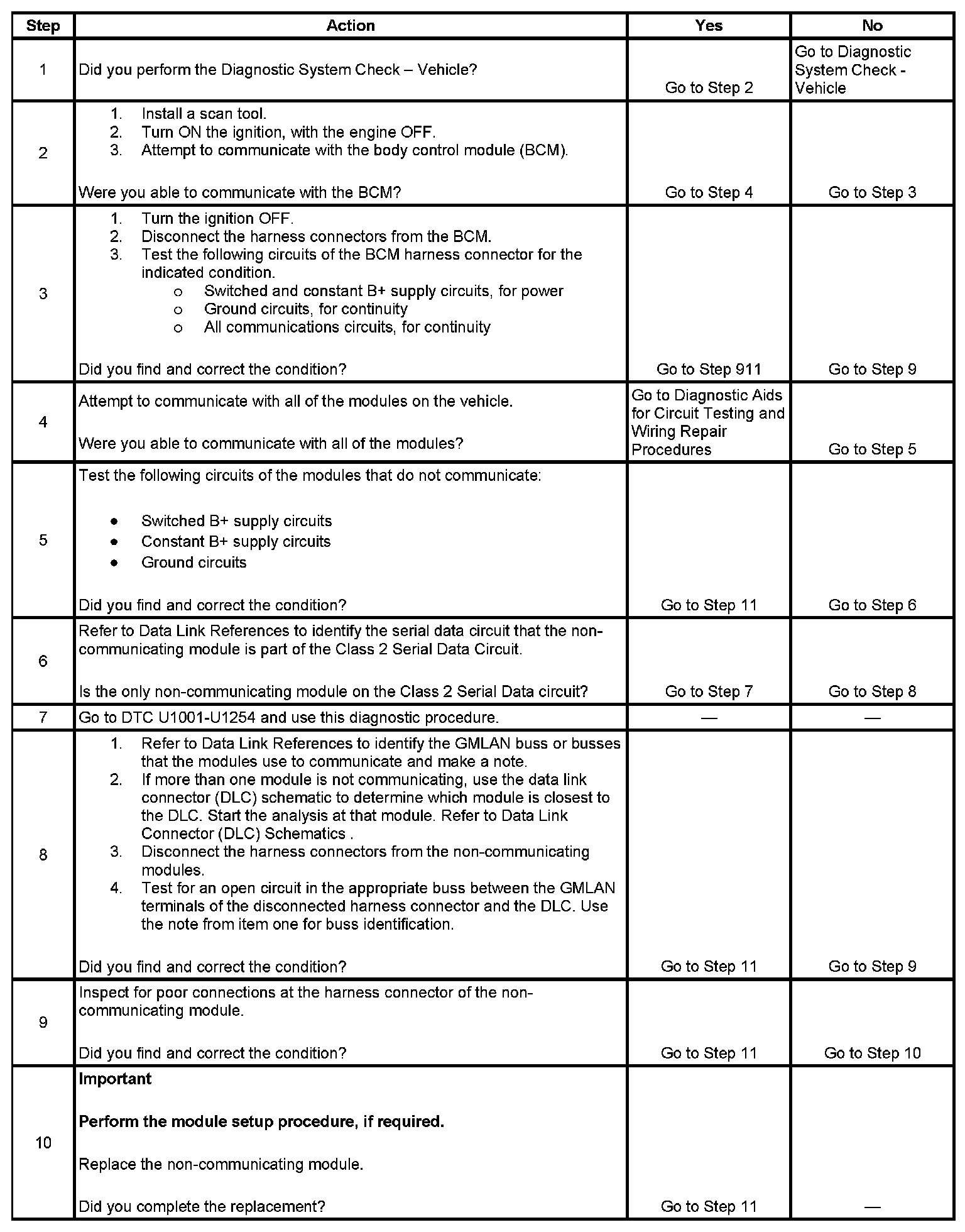 8. This step identifies which of the GMLAN busses the module or modules use for communication. Use the Data Link References for identifying the correct buss to analyze.