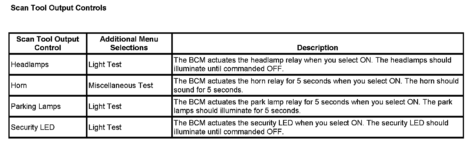 Scan Tool Output Controls: