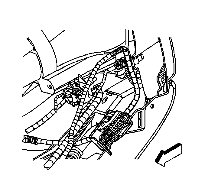 4. Disconnect the antenna extension cable from the communication interface module. The cable is on the passenger side of the module.