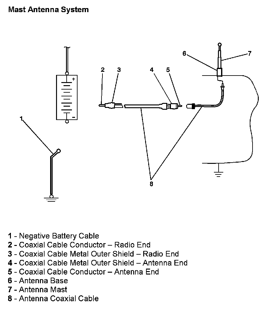 1. The radio antenna module is not grounded properly. The module grounding screws should be clean and tight. Measure the resistance from the antenna module base plate to a good ground. Resistance should be 0.20 ohms or less. Find and correct the condition if the resistance is out of specification.