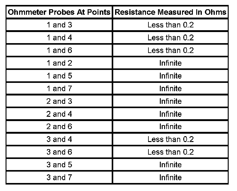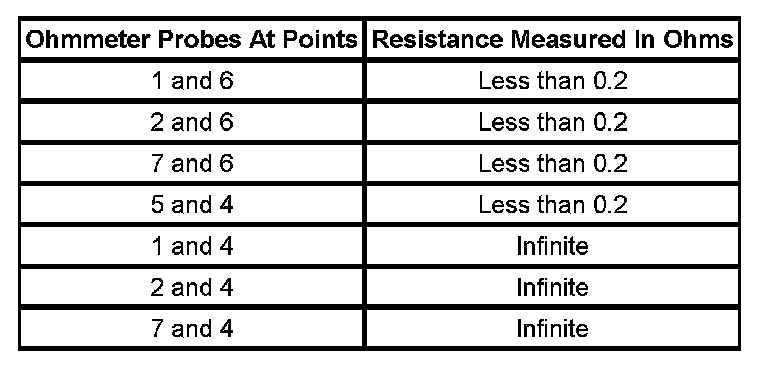 4. The resistance readings specified in the table should always be obtained. Test and/or replace the following when the resistance readings are out of specification.