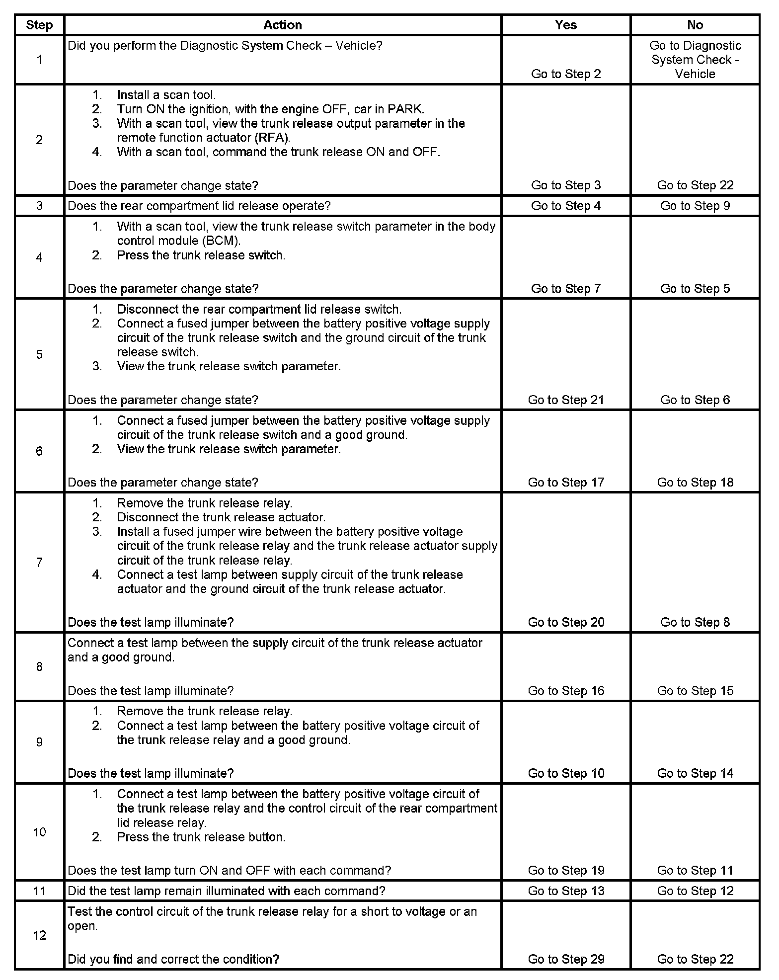 Trunk Release Inoperative