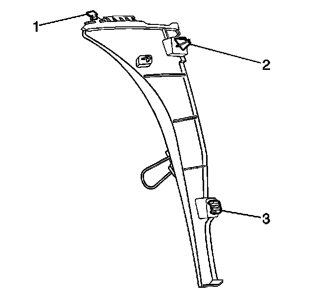 6. Pull out on the lower third of the quarter trim panel to disengage the clip (3).