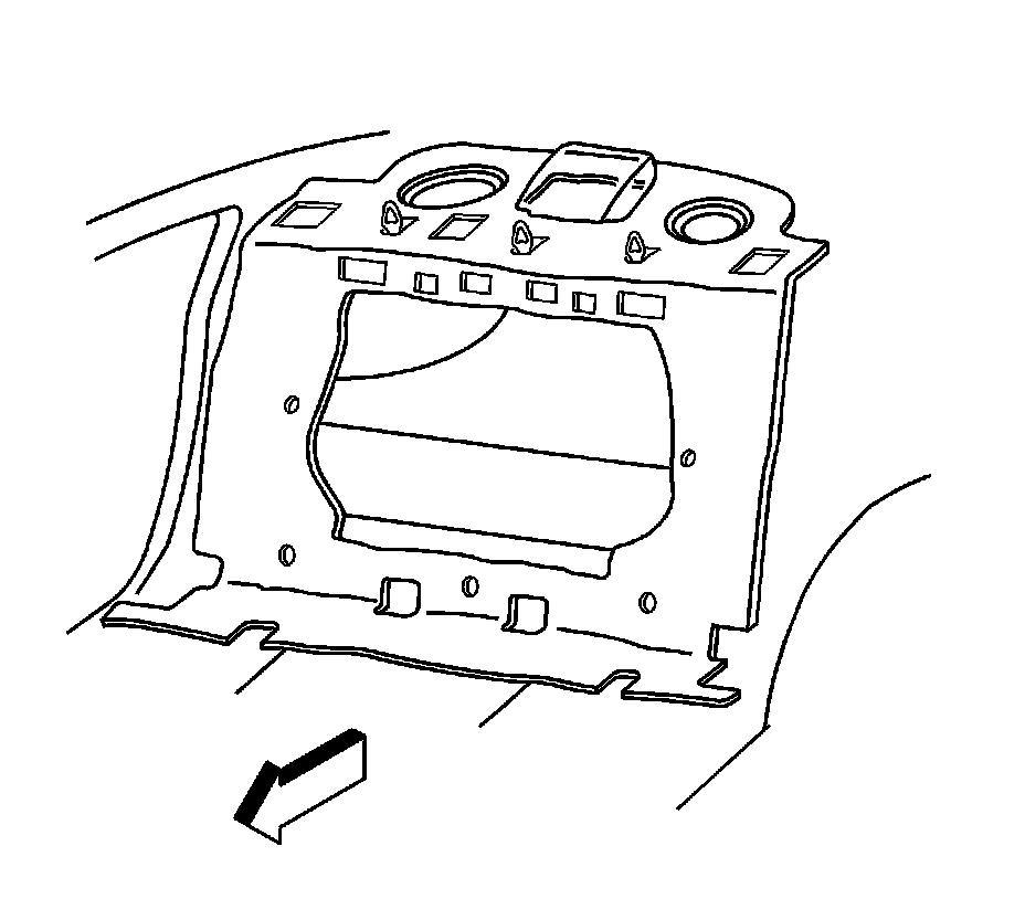 5. Remove the rear window trim panel. Refer to Trim Panel Replacement - Rear Window Shelf (Removal and Replacement) .