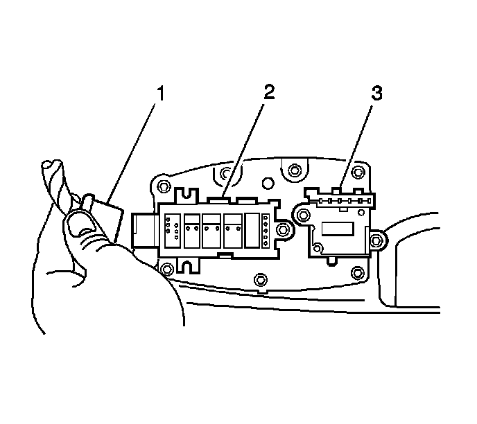 6. If equipped, disconnect the electrical connectors to the power seat switch (2) and lumbar switch (3).
