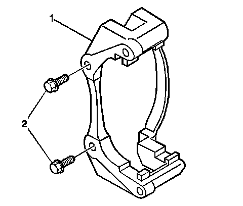 2. Apply THREADLOCKER, GM P/N 12345493 (Canadian P/N 10953488) or equivalent, to the threads of the brake caliper bracket bolts (2).