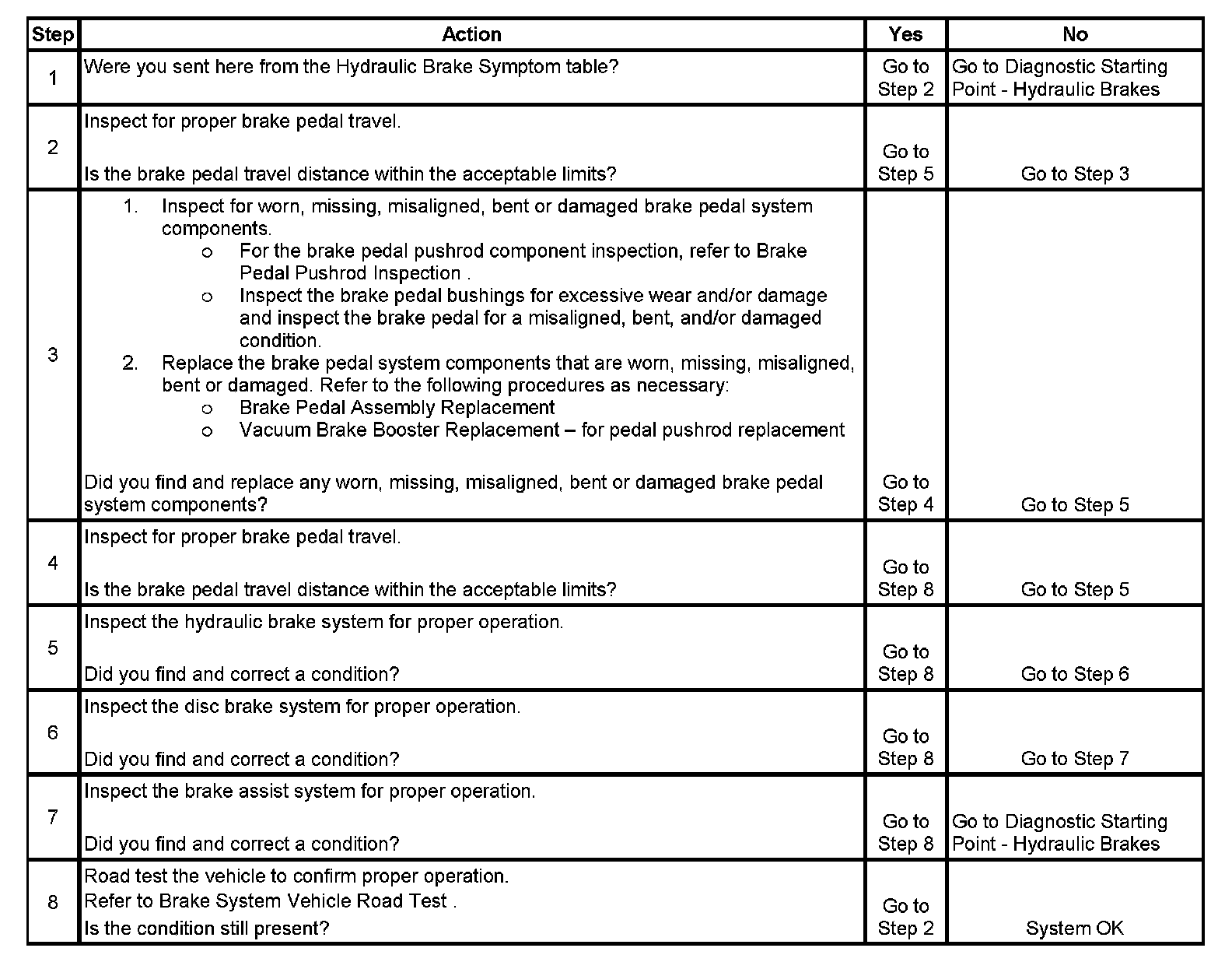 Brake Pedal Excessive Travel